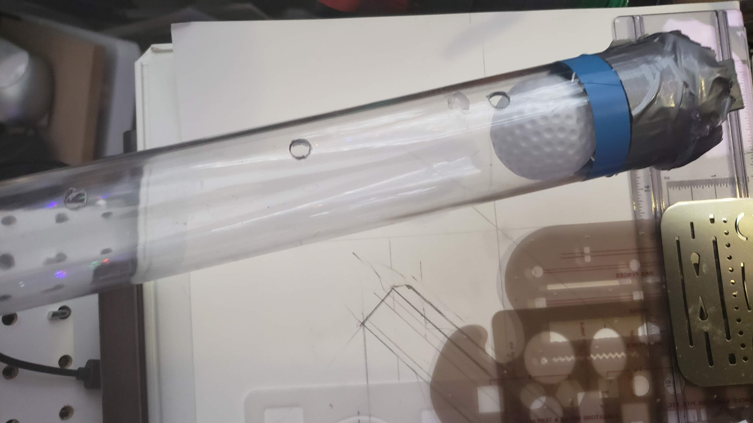 - I decided to use a 12" long, clear, polycarbonate, rigid tube with an interior diameter of 1-5/8" and a 1/16"