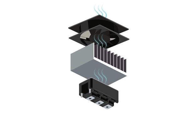 図2:ヒートシンクとファンが連動した実績のある冷却方法(出典:Same Sky)