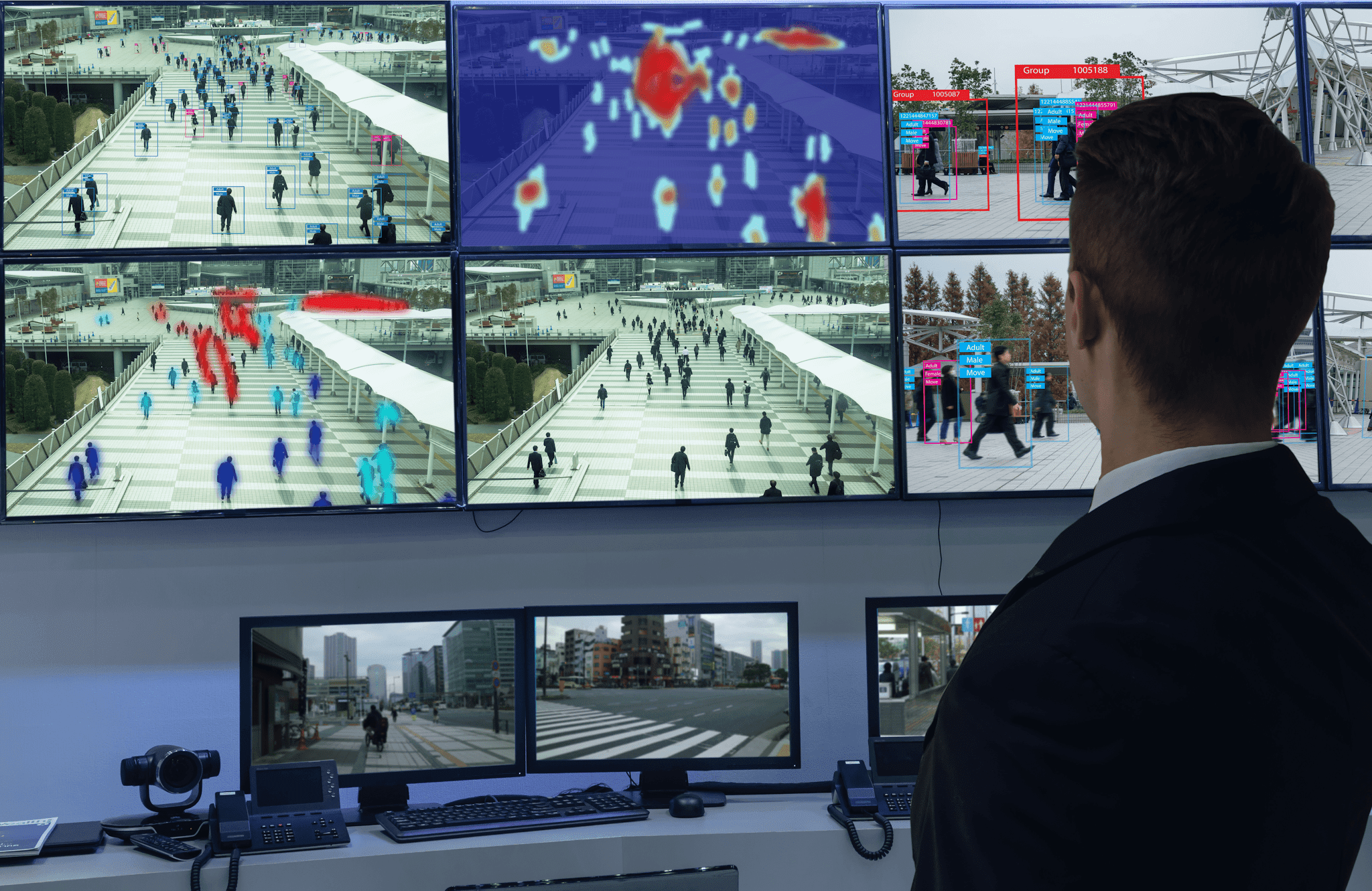 米国CBSのテレビドラマ『PERSON of INTEREST 犯罪予知ユニット』では、強力な機能を持つ高度な人工知能によるセキュリティシステムが描かれています。町中に張り巡らされたカメラネットワークが、人物の身元や行動はもちろん、人間関係にいたるまで、ありとあらゆる情報を記録し、システム中枢がその情報を解析して脅威を割り出し、将来起こりうる脅威についても予測します。もちろん、ドラマの中のこのような「神」に近いAIシステムは、現時点ではまだSFの領域に過ぎません。とは言え、ここで描かれているシステムが少しずつ現実になろうとしているのも事実です。スマートコミュニティやスマートシティでは、インテリジェントなセキュリティシステムが、顔認識、行動認識、人物識別が統合されたAIシステムとして機能するのです。