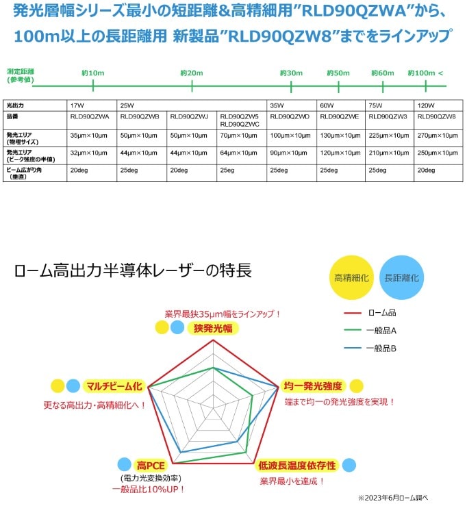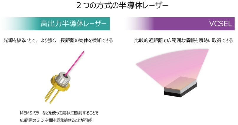 ロームは、高出力半導体レーザーとVCSELの2つの技術を所有する数少ないメーカーのため、 お客さまの用途やニーズ、困りごとに合わせた、柔軟なソリューションのご提案が可能です。