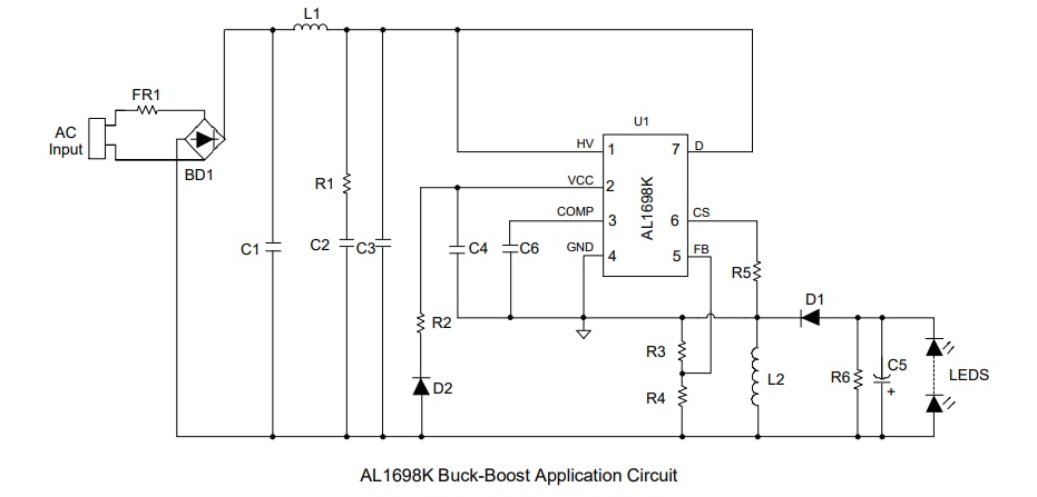 Diodes Incorporated AL1698K高効率調光式LEDドライバ