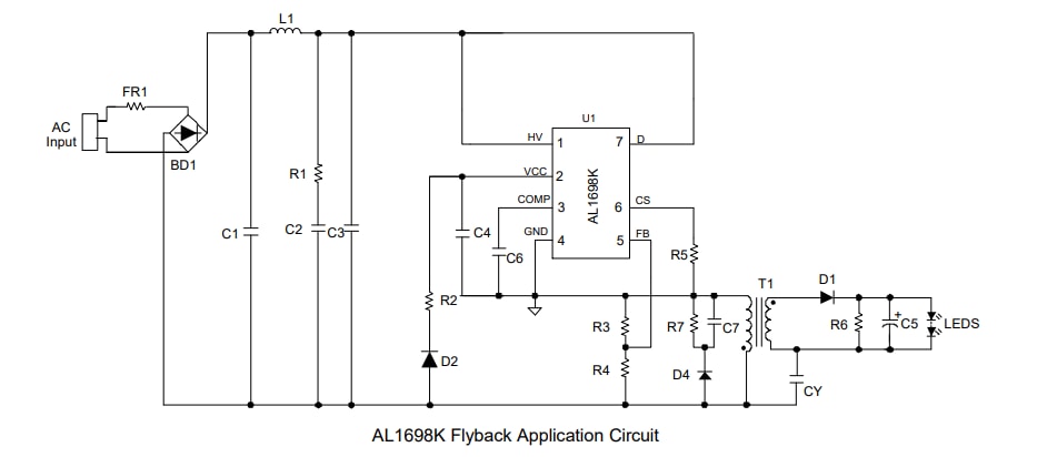 AL1698K LEDドライバは、SO-7パッケージに格納されています。