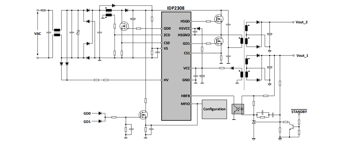 Infineon IDP2303A/IDP2308コントローラは、さらに低い待機電流を実現するためにHV起動セルと高度バーストモードを組み合わせています。さらに、OTP(ワンタイム・プログラミング)デバイスも内蔵しており、デザインイン・フェーズが容易になるようにパラメータを構成できる包括的なセットを実現できます。