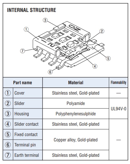 - Excellent contact stability by twin gold-plated contact