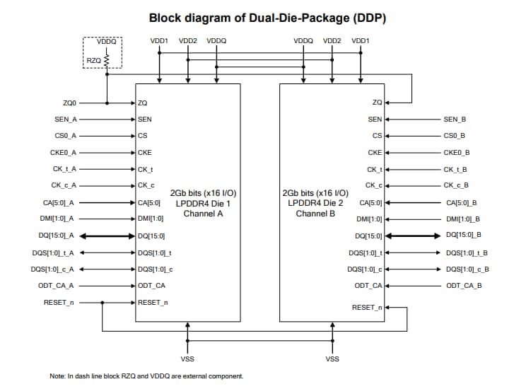 Winbond W66BP6NB/W66CP2NQ SDRAM LPDDR4は、シングル ダイ パッケージ (SDP) 、またはデュアル ダイ パッケージ (DDP) と、コマンド/アドレス (CA)バスの2または4クロックアーキテクチャを提供します。LPDDR4は、CAバスの2クロックまたは4クロックのアーキテクチャを利用し、システム内の入力ピンの数を削減します。6ビットのCAバスには、コマンド、アドレス、バンク情報が含まれています。各コマンドは、1、2、4クロックのサイクルを使用し、この間、コマンド情報はクロックのポジティブエッジで転送されます。シングル ダイ パッケージ(SDP)は、16Mb x 16DQ x 8バンク x 1チャネルを2Gb(2,147,483,648ビット)密度で提供します。デュアル ダイ パッケージ(DDP)は、16Mb x 16DQ x 8バンク x 2チャンネルを4Gb(4,294,967,296ビット)密度で提供します。
